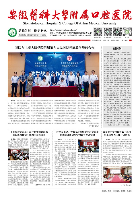 香香腐宅 报的创刊,是医院蓬勃健康发展的重要标志,是文化建设的重要里程碑。院报将立足于口腔卫生系统,秉承“弘扬医院文化,传播健康理念,促进医院发展,保障口腔健康”的宗旨,紧跟医院发展步伐,宣扬医院精神文明建设丰硕成果,交流口腔医疗先进技术,传播口腔保健最新知识,展现口院职工的良好精神风貌。