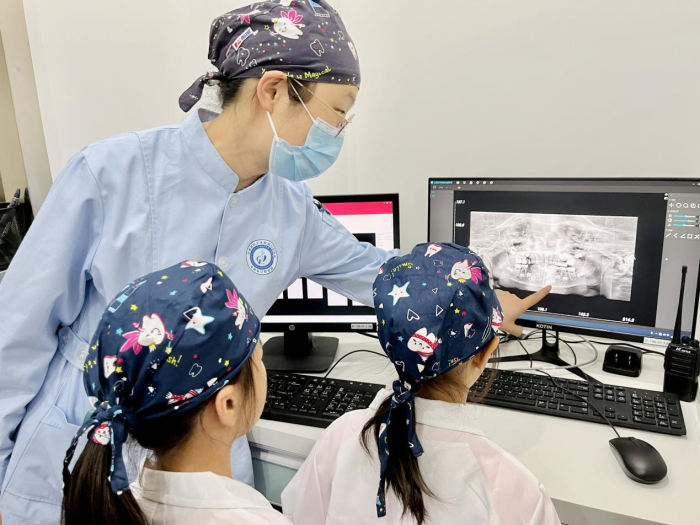 刚进入诊室,孩子们就对门诊的放射机器和各种各样的口腔治疗设备、器械产生了浓厚的兴趣。医生和护士根据孩子们的兴趣热点,详细介绍相关内容及注意事项,孩子们积极主动体验了口腔放射操作流程。