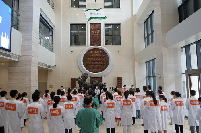 梁朝朝代表学校,在致辞中对本次比赛给予高度肯定,并向前来参赛的各位青年医师致以节日的问候。他表示,习近平总书记在庆祝中国共产党成立100周年大会上的重要讲话中说到,未来属于青年,希望寄予青年。一百年来,在中国共产党的旗帜下,一代代中国青年把青春奋斗融入党和人民事业,成为实现中华民族伟大复兴的先锋力量。新时代的中国青年要以实现中华民族伟大复兴为己任,增强做中国人的志气、骨气、底气,不负时代,不负韶华,不负党和人民的殷切期望。