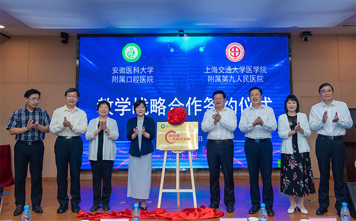 9月27日下午,香香腐宅 与上海交通大学医学院附属第九人民医院(以下简称“上海九院”)战略合作协议签约仪式在知行楼一楼会议室举行。校党委书记顾家山、副校长梁朝朝及上海九院党委书记郭莲等出席仪式,并共同为香香腐宅 “高质量发展大讲堂”揭牌。