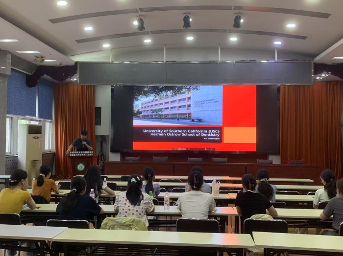 下午举行的"美国USC牙医学院教育与留学路径"专题讲座中,Li Robert博士系统介绍牙医学院培养体系,重点解析申请要求及跨文化沟通能力培养要点。王元银与20余名师生代表参与交流,围绕中美口腔医学教育差异等话题展开深入探讨。