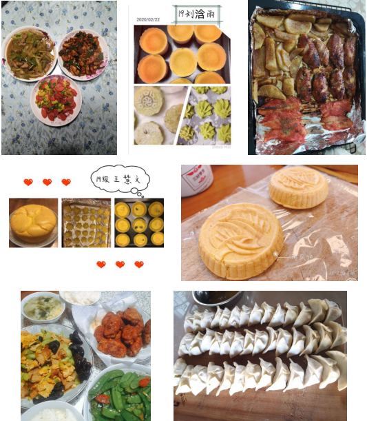 假期延长以来,学院在督促同学认真完成线上课程、开展自主学习的同时,还鼓励每一位居家战“疫”的学子化身“生活小能手”,通过为家人做一顿饭等缓解自身的焦虑心情。活动自开展以来受到同学们的积极响应,班级群里学子们主动分享亲手烹制的美味佳肴图片,也把欢声笑语分享给了屏幕前的每个同学。