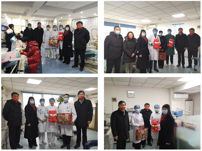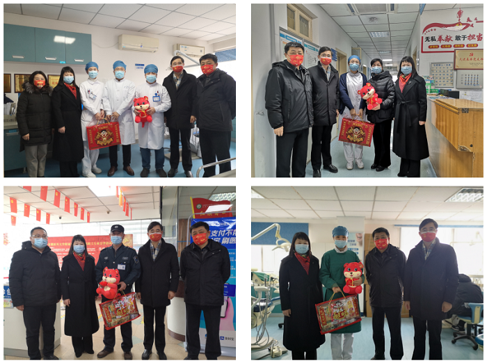 “祝大家新春快乐!”每到一处,院领导都向辛勤工作的值班人员致以新春的美好祝愿,亲切为工作人员送上虎年吉祥物和大礼包,并详细询问了解了患者就诊情况。院领导勉励广大医务人员要始终坚持以人为本,严格做好疫情防控工作,踔厉奋发,笃行不怠,将党史学习教育的成效转化为工作的强大动力,为学院(医院)的高质量发展和高水平医科大学附属专科医院建设开好局起好步。