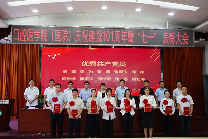 王润玲向受到表彰的先进集体和先进个人表示祝贺,向勤奋工作在学院(医院)教学、科研、医疗、管理等各领域的共产党员致以崇高的敬意和节日的问候,勉励全体党员干部以先进为榜样,艰苦奋斗,昂扬斗志,为建设国内一流高水平医科大学附属口腔医院提供坚强保障。