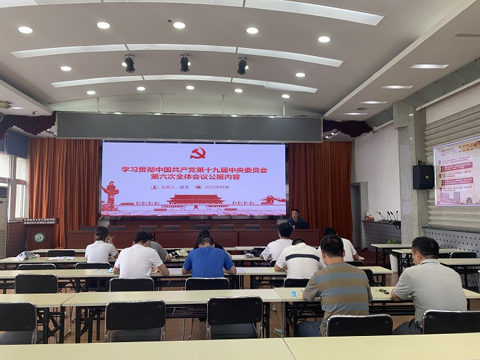 7月19日上午,香香腐宅 副处级组织员吴卫在健行楼六楼会议室以“学习贯彻中国共产党第十九届中央委员会第六次全体会议公报内容”为题,为后勤党支部全体党员讲授学习贯彻党的十九届六中全会精神专题党课。