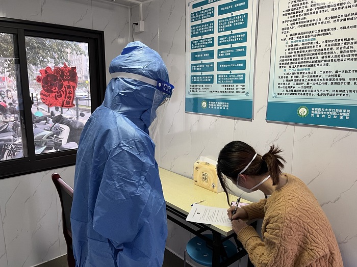 本次演练模拟患者程某1天前开始磨牙疼痛并逐渐加剧,低热, 自服“消炎药”无明显好转,现来香香腐宅 就诊。经查验安康码、行程码为绿码,24小时核酸结果为阴性,体温检测仪显示体温37.6℃。一级预检分诊值班人员立即使用额温枪复测体温显示37.8℃,后将患者引导至临时观察室使用水银温度计进行体温复测,复测体温38℃。预检分诊值班人员同时对患者进行流行病学调查,并立即报告新冠疫情防控领导小组办公室、院感部,经研判后,立即启动发热患者门诊应急处置流程。演练包括病例发现及应急响应、病例上报及护送转运、临时观察室终末工作、医护人员及患者安抚、感控普及、应急响应终止等流程。此次演练中工作人员职责分工明确,全员防护准备充足,整体组织协同配合能力准确高效,应急处理流程合理,达到了预期效果。