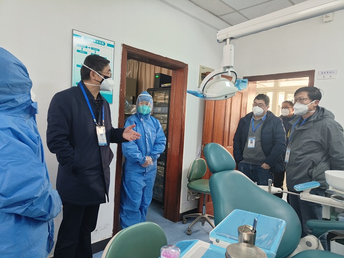 何家才一行先后前往医院临床科室、医技科室及部分职能科室,详细了解了各科室人员在岗、医疗物资配备、门诊患者等方面的情况。走访慰问中院领导边走边看边问,表达了对医院一线员工的高度关注和对职工的关心关怀。