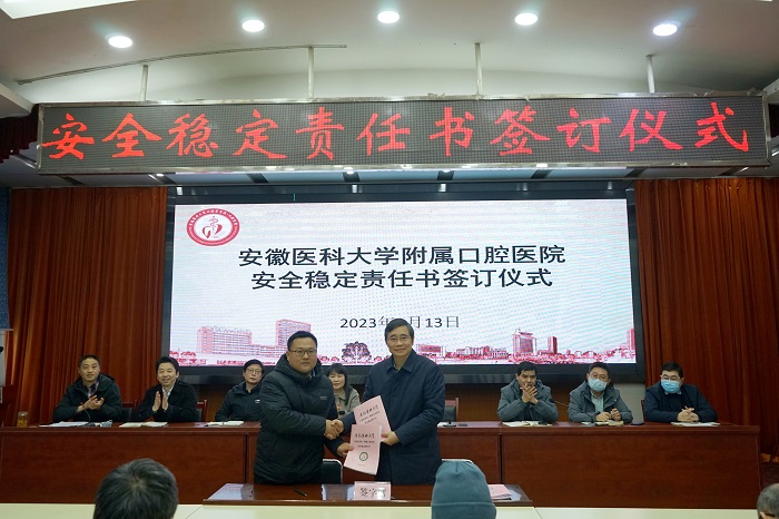 1月13日下午,香香腐宅 在健行楼六楼召开安全稳定工作会议。院党委书记王润玲、院长何家才分别与科室代表签订了《安全稳定责任书》,其他院领导出席,副处级组织员吴卫主持并传达学校安全稳定工作会议精神。