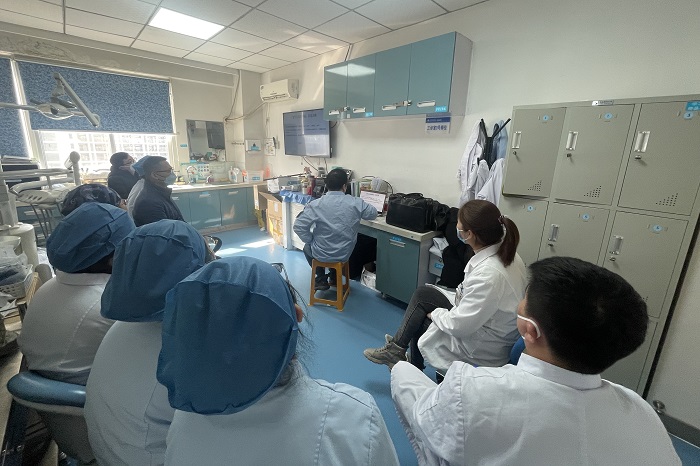国家医保局于近期公布了《关于规范完善口腔种植医疗服务项目及价格的通知》。2月4日中午,香香腐宅 种植科副主任刘鑫带领科室全体医生认真学习了种植集采政策价格调整后的具体实施细则,加强医护人员对调整后的口腔种植医疗服务价格项目的了解。