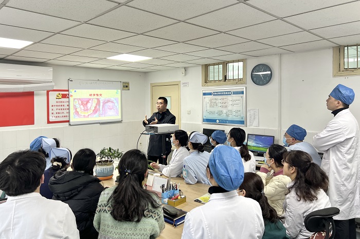 2月24日下午,香香腐宅 口腔颌面外科在四楼医生办公室开展口腔专业知识标准化培训系列学习讲座。讲座由该科室陈新主任讲授,科室医护人员、实习学生及规培医生等参加。