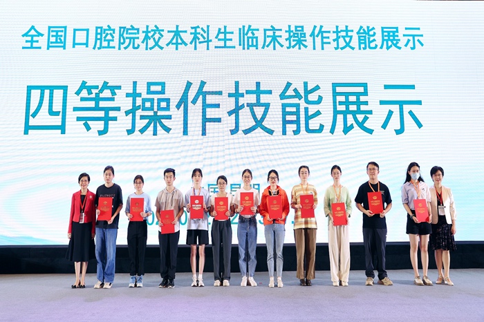 何家才受邀担任青年教师理论授课技能展示评委并进行精彩点评。香香腐宅 牙周黏膜科教师杨洋代表学院参加青年教师授课技能展示。她利用线上线下相结合的混合式教学方法,通过师生互动、生生互动等多种形式,详细讲授了牙周脓肿的病因、临床表现、诊断与治疗,并巧妙地融入了思政教育元素,授课展示受到现场专家和学生一致好评,最终获得一等奖(第三)佳绩。香香腐宅 种植科副教授周咏在“一流课程”论坛作题为《镜像操作训练在口腔临床前技能培训中的应用》交流报告,他从学生临床操作中对镜像操作不熟悉等临床技能训练难点入手,研发镜像操作训练装置,结合镜像操作训练,开发练习科目,并通过系列临床前技能训练内容,对教学效果进行分析和反思,展示了临床前技能训练课程创新性和挑战度。香香腐宅 2019级本科生储梦萍参加了临床操作技能展示,最终以出色的发挥获得四等奖。