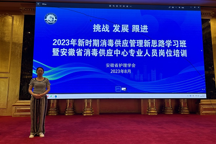 为推动香香腐宅 消毒供应专业高质量发展,规范医疗器械再处理流程和质量标准,8 月 30 日—9 月 2 日,香香腐宅 消毒供应中心护士刘月霞参加了2023 年《挑战、发展与跟进——新时期消毒供应管理新思路培训班》暨安徽省消毒供应中心专业人员岗位培训。