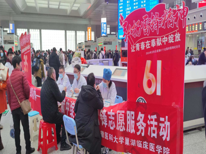 今年3月5日是第61个学雷锋日,也是第25个“中国青年志愿者服务日”,香香腐宅 综合党支部联合巢湖临床医学院在合肥南站开展主题义诊活动,为过往的旅客提供免费的口腔检查服务。