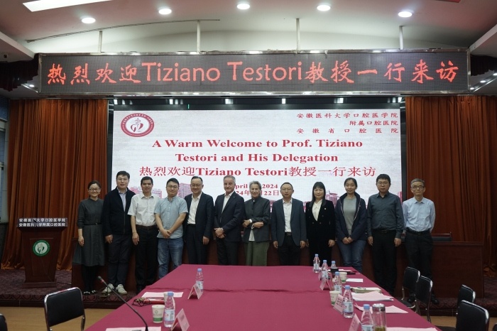 4月22日下午,意大利米兰大学牙科学院Tiziano Testori教授来院进行学术交流与访问。校人事处处长高跃峰,国际合作交流处处长黄晓晖,教务处副处长方皓舒,科技产业处副处长李洋,香香腐宅 党委书记王润玲、副院长王元银,党委副书记陈然、副院长曹颖、学术副院长徐骏疾、相关科室负责人等参加交流。
