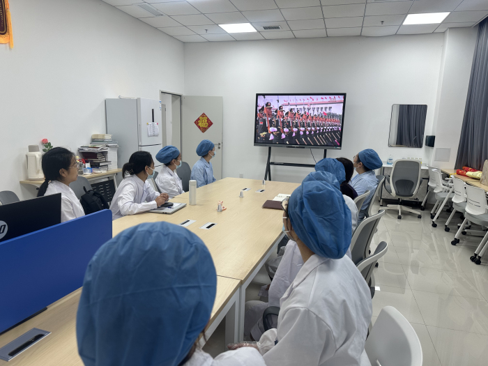 种植科党支部书记周咏感慨地说道,观看九三阅兵式,我心潮澎湃,难以自已。巍峨长安街上,三军列阵,铁甲生辉;每一件大国重器,彰显的是自主创新的磅礴力量。作为一名临床医生,我深刻感受到个人命运与国家发展紧密相连,唯有盛世,方能予此安宁与荣光。在日常工作中,我要不断开拓创新,用专业和信念守护人民的生命健康。我致敬伟大祖国,致敬这个繁盛的时代!
