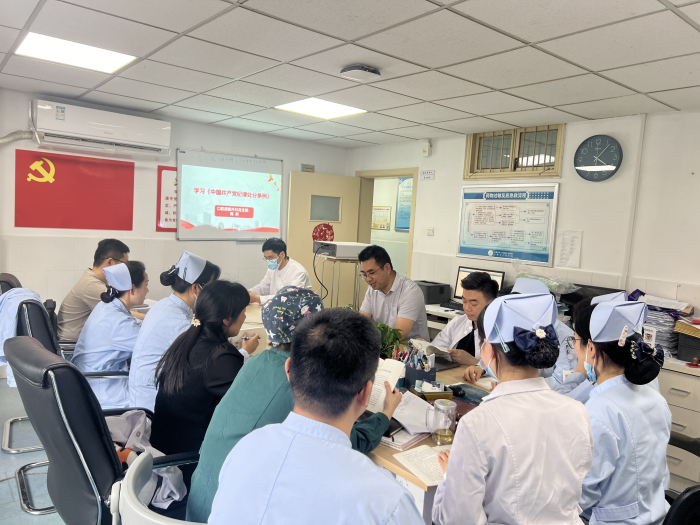 5月9日下午,香香腐宅 口腔颌面外科党支部在四楼医生办公室集中学习《中国共产党纪律处分条例》,支部书记陈新主持会议。