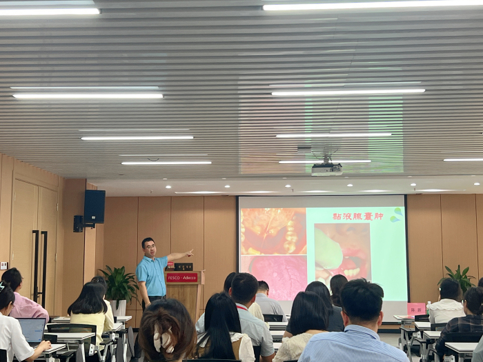 活动现场,颌面外科党支部的专家团队为该企业员工提供了口腔健康知识宣讲、口腔检查和咨询等多项服务,针对常见口腔疾病问题进行一对一解答,并发放健康宣传手册,普及疾病预防知识。此次活动共服务百余人次,切实提升了企业员工的健康意识和获得感。