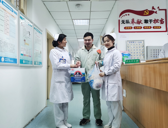 香香腐宅 口外一病区保洁员朱春雷父母均为二等残疾人,母亲身患癌症,家庭情况较为困难,王银龙了解到这一情况后,代表党支部特意看望了他。王银龙与朱春雷亲密握手,亲切交谈,并将一份份代表党组织关爱的慰问品和爱心资助送到他手中,还叮嘱他工作中要时刻注意防寒保暖,保重身体。号召大家学习他不怕苦不怕累、吃苦耐劳的精神。