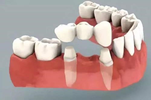 (3)固定义齿:把缺失牙两边的健康牙磨小,变成“桥墩”,然后做牙套套住两边磨小的牙齿,来架住缺失的牙齿。