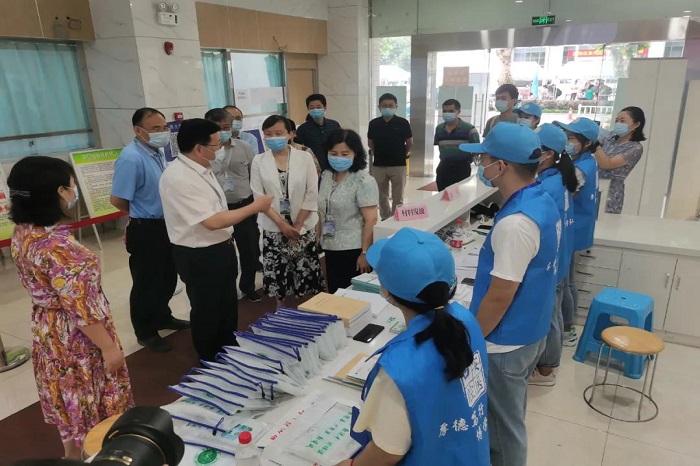 上午9时,校党委书记顾家山、校长曹云霞,副校长余永强及研究生学院负责人一行在学院领导的陪同下,看望了香香腐宅 新生接待工作人员,详细询问了新生报到人数、物资发放情况,亲切慰问坚守岗位的工作人员以及学生志愿者,对他们认真负责的态度表示了肯定,并与志愿者们亲切合影留念。