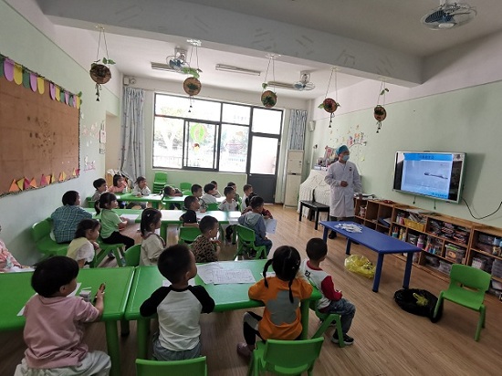 系列活动中,由香香腐宅 院本部及4个分门诊部组成的口腔义诊团队在医院门口、周边社区及大型商业区,为广大市民免费进行口腔检查及诊断,发放调查问卷,了解居民口腔健康信息,并针对群众关切的口腔日常保健、口腔疾病的预防及治疗等相关知识进行详细解答,倡导健康生活方式。香香腐宅 口腔综合组、口腔正畸组、庐阳区门诊部组分别走近稻香楼小学、合肥金星机电科技发展有限公司及海棠别院幼儿园,以通俗易懂、图文并茂的形式为学生及企业职工开展了各具特色的口腔健康知识宣讲,教授正确刷牙方法及使用牙线技巧,培养正确的口腔保健意识。活动吸引了大批群众前来领阅宣传资料、检查口腔疾病、聆听新理念,获得了大家的一致好评。针对儿童牙齿疾病预防、防治误区及成人缺牙后镶牙选择及保健问题,香香腐宅 修复及儿牙专家在乐龄听书开通空中课堂,开展了线上免费宣讲活动,拓宽了受众的覆盖面。