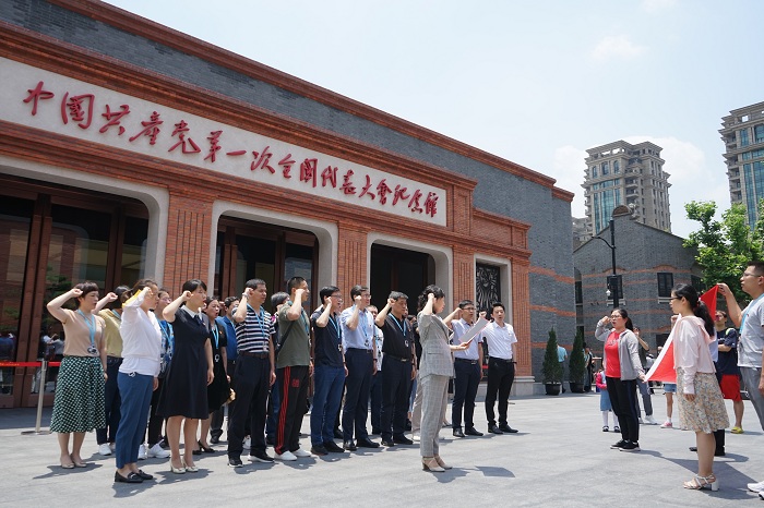 梧桐掩映着宁静道路,沿街一幢石库门建筑伫立。乌漆大门、青砖粉线,渔阳里、甲秀里、成裕里、辅德里……全体学员在讲解人员的带领下,走近中国共产党梦想起航的地方,在上海中共一大会址纪念馆细细读懂其中蕴含着“红色密码”。学员们聆听了全国各地的13名代表在此初创伟业的艰辛、《新青年》编辑部的星火初然、李达夫人王会悟几经选址的勇气与智慧等党史故事,对党的初创时期有了更深入的了解。