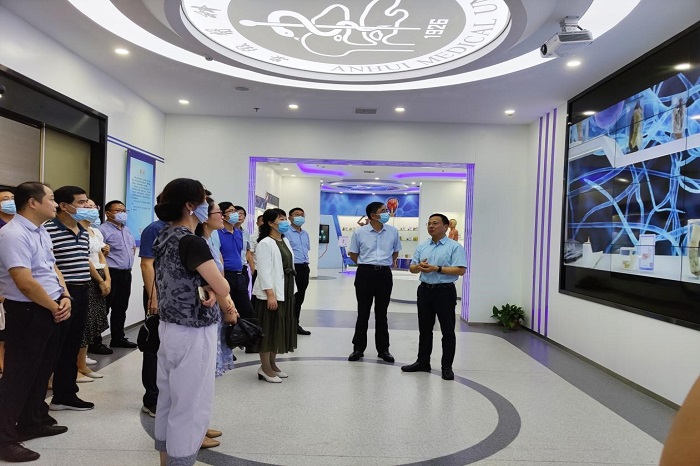 在校博物馆-中医珍品馆内,中心组成员深切感悟到中华传统文化的独特魅力,增强了文化自信。最后,中心组来到实验教学中心党支部党员活动中心,双方党组织负责人围绕党建工作和党史学习教育,交流了各自的工作经验和心得。