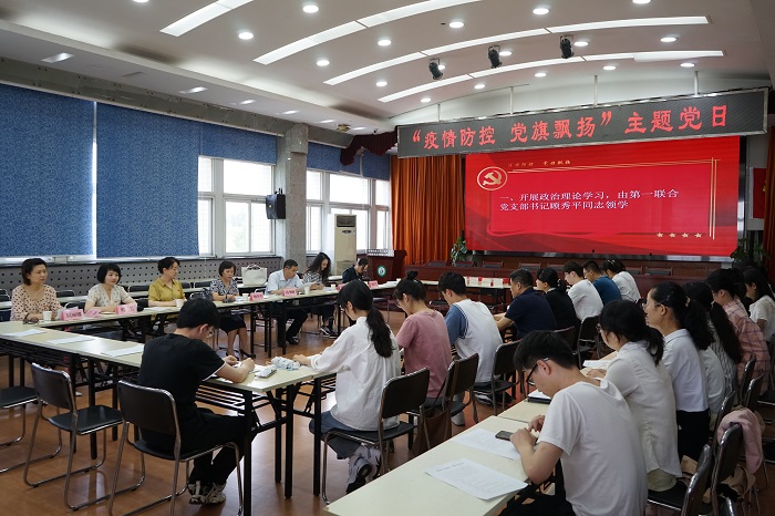6月10日下午,校机关党委第一联合党支部和香香腐宅 党委本科生第二党支部在健行楼6楼会议室联合开展“疫情防控 党旗飘扬”主题党日活动。校党委常委、统战部部长、第一联合党支部书记顾秀平,机关党委书记孙华峰,校工会主席夏云,工会副主席李群,香香腐宅 副院长蒋勇出席会议。