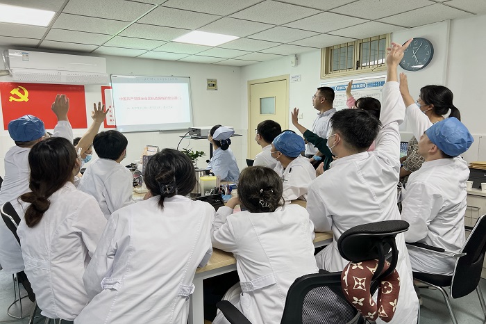 8月10日下午,香香腐宅 口腔颌面外科支部以“喜迎二十大,永远跟党走,奋进新征程”为主题举办党史知识竞答活动。支部副书记陈新主持会议。