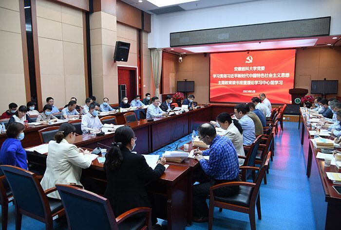 学校党委把“学思想”摆在首位,研究制定理论学习工作方案,坚持原原本本学、及时跟进学、以上率下学、融会贯通学、结合实际学,通过党委常委会“第一议题”、理论学习中心组学习会、读书班、专题党课、集中培训等形式,全面深入学习习近平新时代中国特色社会主义思想的世界观、方法论和贯穿其中的立场观点方法,推动师生医护员工深刻领悟“两个确立”的决定性意义。学校各级党组织组织党员就近就便赴革命纪念馆、烈士陵园、党风廉政教育基地等接受党性教育。校党委主题教育读书班通过辅导报告、集中学习、个人自学、交流研讨、实践学习等方式开展学习培训,在交流研讨环节,围绕安徽省委规定的8个方面内容,结合学校实际,设置包括干部人才队伍建设、附属医院提质升级、科研创新突破等在内的七大研讨主题,校领导班子成员带头发言,交流学习贯彻的体会、解决实际问题的具体案例、改进工作的思路举措,坚持边学习、边对照、边检视、边整改,持续推动学习贯彻习近平新时代中国特色社会主义思想往深里走、往实里走、往心里走。