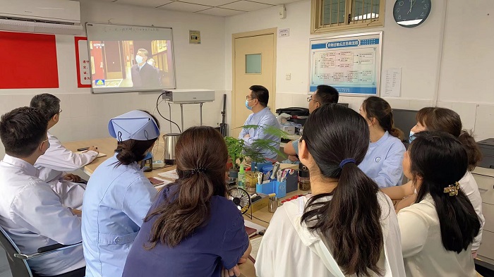 6月13日中午,香香腐宅 口腔颌面外科党支部在四楼医生办公室召开支部会议,集中学习习近平在内蒙古考察时的重要讲话,观看学习习近平关于全面从严治党重要讲话相关视频。支部书记王银龙主持会议。