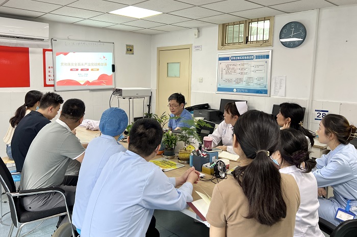 王银龙以《贯彻落实全面从严治党战略部署》为题,主要从聚焦新时代新征程党的使命、立足中心大局,紧密结合工作实际以及坚持问题导向,厘清工作中的短板不足三个方面讲述了新时代新征程上坚定不移推进全面从严治党的重要意义和科学内涵。他表示,习近平总书记在党的二十大报告中深刻分析了腐败滋生的原因,阐明了我们党与腐败水火不容的鲜明立场,强调反腐败斗争一刻不能停,作出必须永远吹冲锋号,坚决打赢反腐败斗争攻坚战持久战的重要部署。支部成员要深入学习党的二十大精神及习近平总书记在二十届中央纪委二次全会上的重要讲话精神,结合主题教育以学正风的要求,坚持目标导向和问题导向,全面查找廉洁风险点,筑牢思想防线,以清醒的政治头脑、务实的工作作风把全面从严治党战略部署落到医院和科室各项工作中。