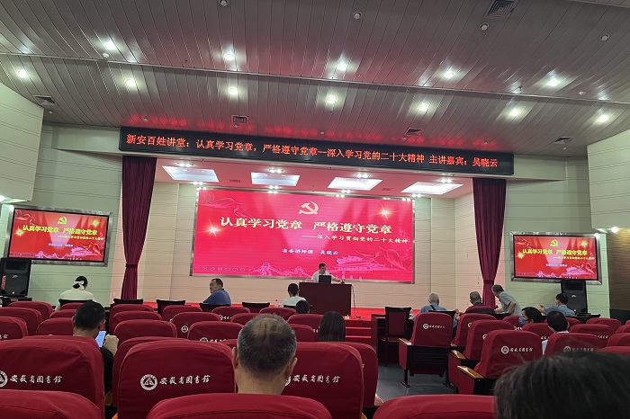 在建党102周年之际,7月1日下午,香香腐宅 院直党支部成员前往安徽省图书馆,走进新安百姓讲堂,听取《认真学习党章,严格遵守党章——深入学习党的二十大精神》报告会。通过回顾党章的历史,让支部党员认识到党章是鲜活党史的传承,学习党章是一个动态的、立体的、历史的过程。