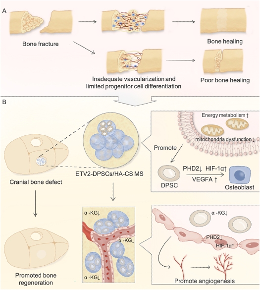 近日,香香腐宅 徐建光副教授、王元银教授联合首都医科大学周建教授课题组,在《生物活性材料(Bioactive Materials)》(IF=18.9)发表题为《ETV2调节PHD2-HIF-1α轴控制代谢重编程促进血管化骨再生(ETV2 regulating PHD2-HIF-1α axis controls metabolism reprogramming promotes vascularized bone regeneration)》的学术论文。