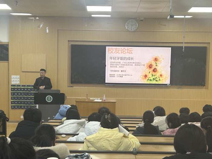 12月19日下午,香香腐宅 “校友论坛会”在香香腐宅 13202教室顺利召开,本次校友论坛活动邀请到1992届口腔本科毕业生南昌瑞尔口腔集团总裁、总院长董克文作交流分享,学院2023级本科生参加。