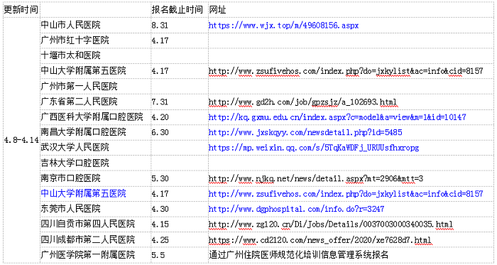 规培信息4.8-4.14