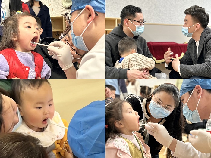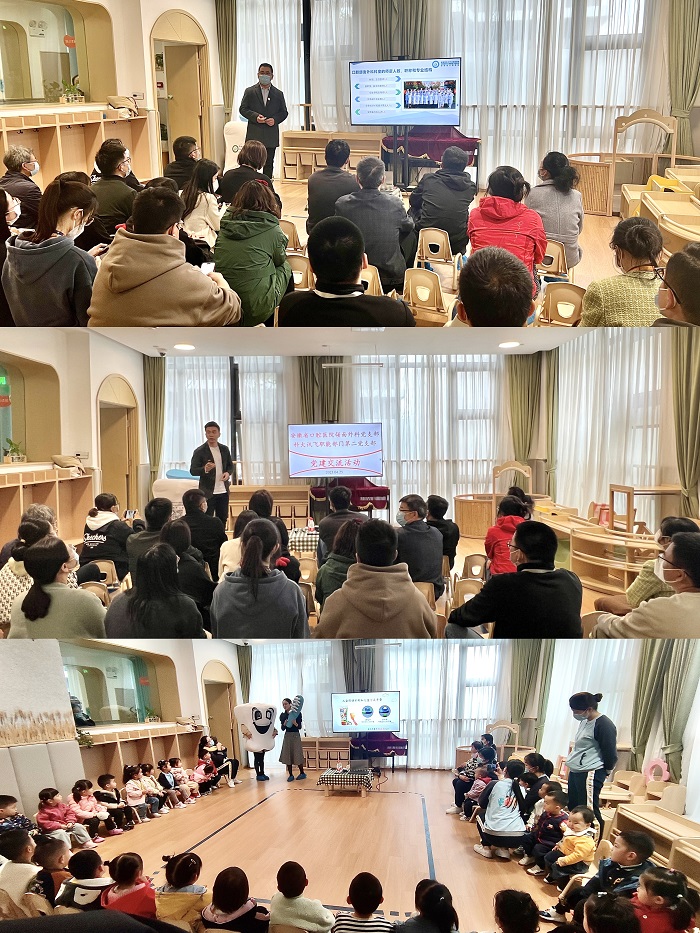 托育园园长对香香腐宅 颌面外科党支部的到来表示热烈欢迎。陈新就安徽省口腔医院口腔颌面外科党支部(科室)的党建及业务开展情况进行了简单介绍。随后,主管护师郭爽就如何保护牙齿及正确刷牙对小朋友进行健康宣教。沈博文医生为家长们开展了一堂精彩的《口腔健康知识》讲座,详细介绍了婴幼儿口腔常见病及处理,并与陈新主任就常见口腔保健问题对家长进行答疑解惑。颌面外科医护人员还对小朋友的口腔进行了细致的检查,并针对具体情况提出个性化治疗方案和合理化建议。现场气氛融洽,小朋友们积极配合,并与医生展开良好互动。