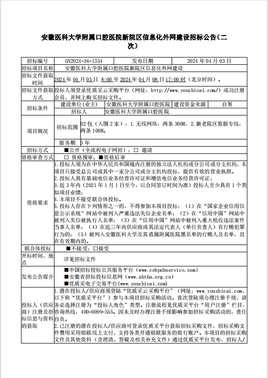 香香腐宅 新院区信息化外网建设招标公告(二次)