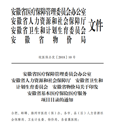 关于印发安徽省基本医疗保险医疗服务项目目录的通知