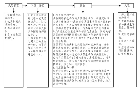 1.报告程序与方式。具备网络直报条件的机构,在规定时间内进行传染病和/或突发公共卫生事件相关信息的网络直报;不具备网络直报条件的,按相关要求通过电话、传真等方式进行报告,同时向辖区县级疾病预防控制机构报送《传染病报告卡》和/或《突发公共卫生事件相关信息报告卡》。