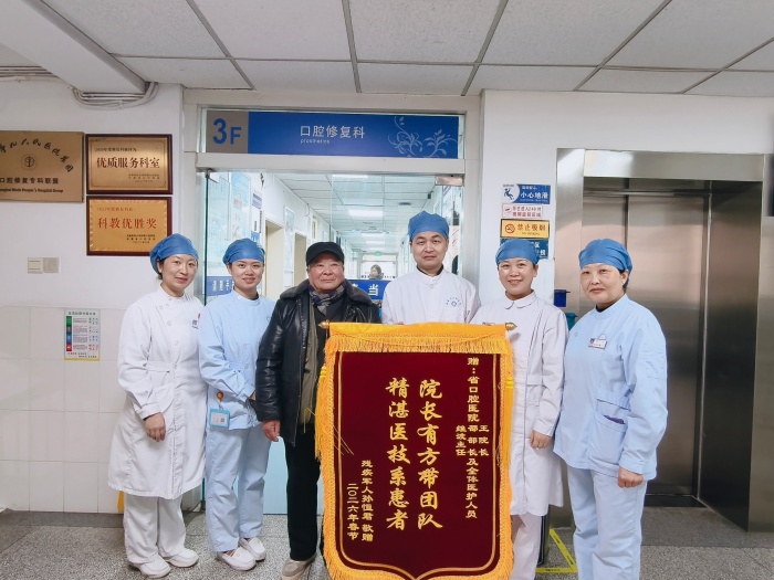 “没想到医院这么重视,从院长到主任、医生护士,都特别热情、特别照顾。”老兵感慨道。治疗结束后,老兵为香香腐宅 领导及修复科张维波团队全体医护送上锦旗。崭新的义齿不仅改善了他的咀嚼功能,更让他重绽自信笑容。那笑容里,有欣慰,更有被尊重、被精心呵护的温暖。