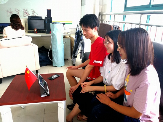 口腔医学院组织留校学生在尚美楼12楼办公室,共同收看庆祝中华人民共和国成立70周年大会直播盛况。