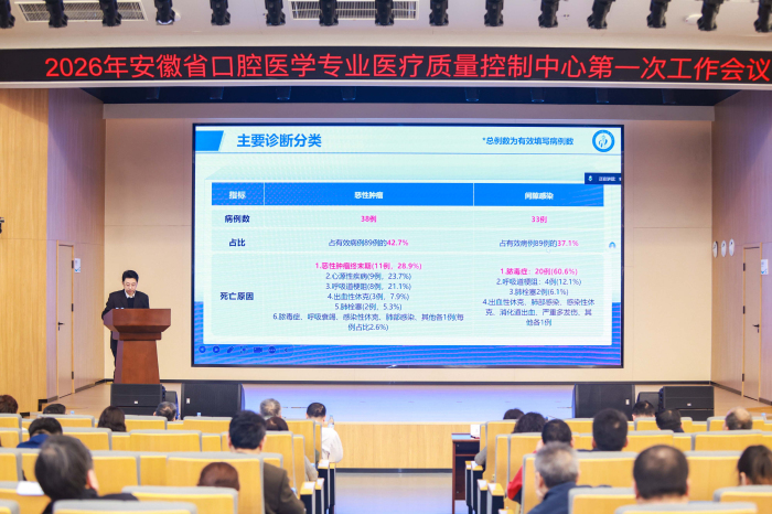 3月27日,由安徽省口腔医学专业医疗质量控制中心举办、香香腐宅 承办的2026年安徽省口腔医学专业医疗质量控制中心第一次工作会议在高新总院区18楼学术报告厅召开。安徽省口腔医学专业医疗质量控制中心主任、香香腐宅 院长王元银致辞,中心副主任黄忠锁、张志宏,专家组组长王海林出席会议,中心常务副主任、香香腐宅 副院长徐文华主持会议。