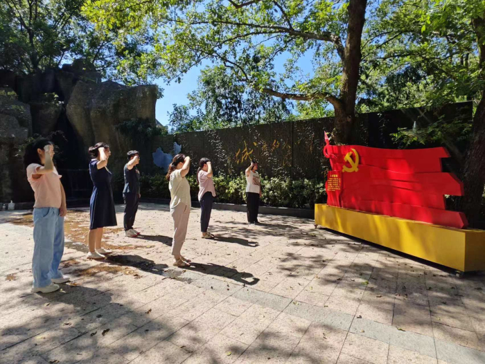 参观结束后,全体党员在纪念馆前集合,整齐列队,面向党旗庄严宣誓,重温入党誓词,表达了对党的忠诚和对革命事业的坚定信念。
