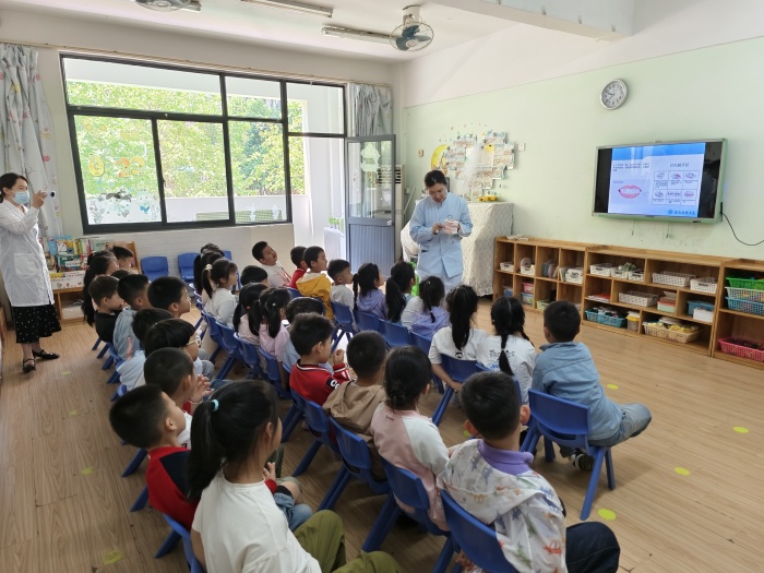 口腔宣教进校园,寓教于乐迎“六一”。香香腐宅 庐阳区门诊部团队、儿童牙病科团队、牙周黏膜科团队及党支部师生分别前往海棠别院幼儿园、西园新村幼儿园、大西门幼儿园、附属小学,为孩子们送去了生动的儿童口腔预防与保健讲座。通过有趣的故事和互动问答,向孩子们讲解牙齿的重要性、如何正确刷牙以及预防龋齿的方法。宣教医生及团队成员还为学龄前儿童免费进行口腔检查并赠送口腔保健小礼品,鼓励孩子们要保持良好的口腔卫生习惯。活动得到各个幼儿园师生的热烈欢迎。