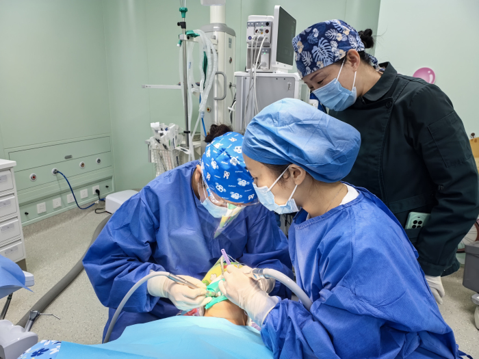 面对这一临床难题,麻醉科主任夏晓琼、副主任刘萍联合牙体牙髓科医生汪千霞,共同制定了详尽的治疗方案。麻醉团队采用舒适化镇静技术,通过精准药物调控使患者进入适度的镇静状态,有效抑制了咽反射。在全程严密监护下,患者生命体征平稳,能够良好配合治疗。汪千霞顺利完成了全部根管治疗操作,术中患者未出现任何恶心、呕吐等不适反应。